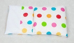Biała pościel do wózka z drewna dla lalki w kolorowe koła