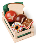 Bułki, rogale i inne, drewniane pieczywo w skrzyneczce, 28237-Erzi, zabawy w sklep dla dzieci