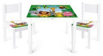 Drewniany stolik dla dzieci i dwa krzesełka White, meble do pokoju dziecięcego