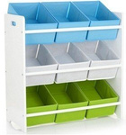 Drewniany regał z pojemnikami na zabawki Biel