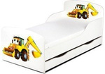 Białe łóżko dziecięce z szufladą drewniane Pracowita koparka