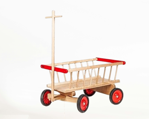 Wózek do ciągnięcia dla dzieci wykonany jest z brzozy/ buku, maksymalne obciążenie wynosi 20 kg.