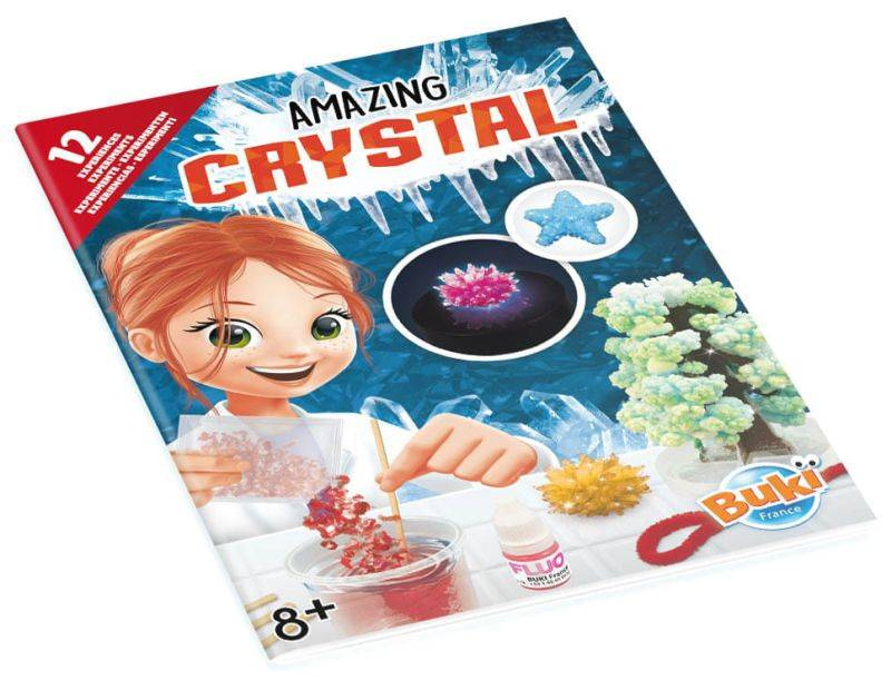 Pielęgnuj 12 niesamowitych i pięknych kryształów od Buki. Odkryj ich piękny kryształ drzewo, stwórz skrystalizowany klejnot czy też wyhoduj mega-kryształ. Umieść swoje kryształy na podświetlanej podstawie i obserwuj, jak światło przez nie przechodzi. Ćwiczenia z wykorzystaniem kuchenki mikrofalowej dla zwiększenia prędkości i bezpieczeństwa.