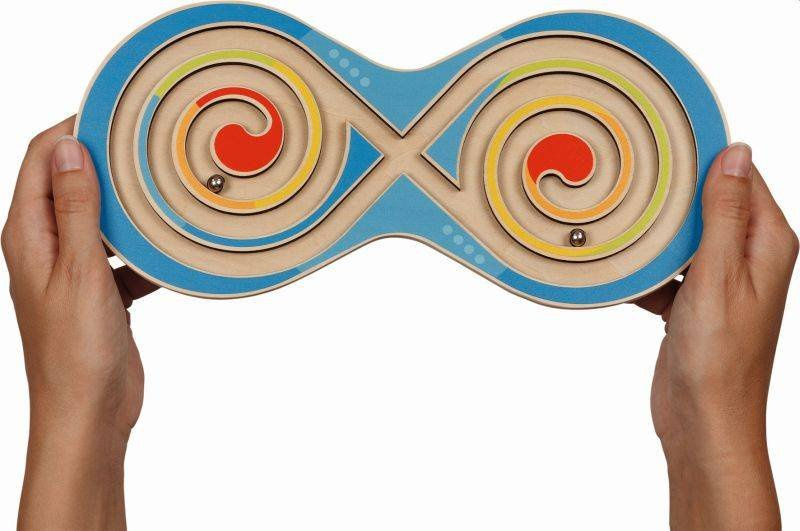 Wspaniała gra zręcznościowa dla młodych odkrywców. Drewniana tablica z wbudowanym labiryntem oraz dwiema metalowymi kuleczkami to zabawka, którą można bawić się w każdym miejscu. Lekka, wygodna i poręczna będzie idealnym pomysłem na zabicie nudy. Pociecha może bawić się nią w domu, na dworze czy w trakcie podróży autem, które dosyć często są nużące. W towarzystwie tablicy z labiryntem nasz mały szkrab w miły i efektywny sposób spędzi wolny czas.