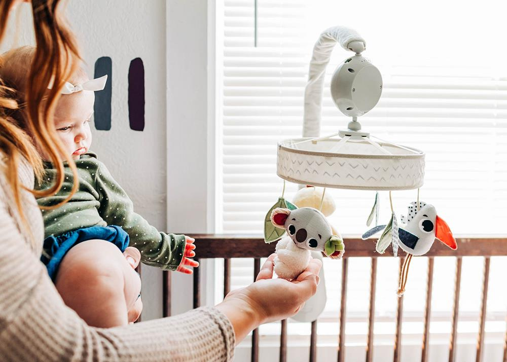 Stała sekwencja: światło, muzyka i ruch – wspiera tworzenie wieczornej rutyny i przygotowuje dziecko do samodzielnego zasypiania.