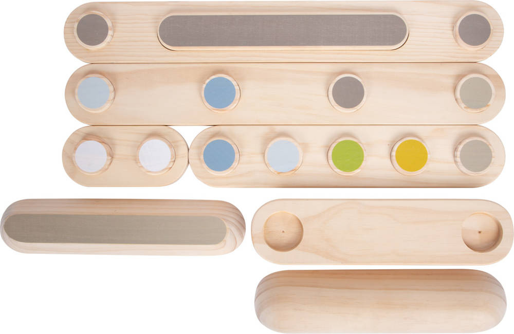 Drewniana dróżka do ćwiczenia równowagi Przygoda Small Foot to łatwy i przyjemny kurs gimnastyki dla najmłodszych. 7 równoważnych belek, które możemy układać w dowolny sposób stopniując przy tym poziom trudności, tworzy ścieżkę rozwijającą umiejętność utrzymania równowagi naszych pociech. Łatwy sposób układania i łączenia ze sobą elementów ułatwi maluchom przygotowanie zabawy. Zestaw rośnie razem z dzieckiem i może być przeznaczony do celów terapeutycznych. Ścieżka do ćwiczenia równowagi Small Foot to wspaniała okazja do ćwiczeń rozwijających motorykę dużą, aktywność fizyczną oraz wyobraźnię małych sportowców. Wykonana z materiałów wysokiej jakości w odcieniach szarości oraz naturalnego drewna ozdobi każde wnętrze. Po zakończeniu zabawy wkładane elementy można przechowywać w kompaktowy, zajmujący mało miejsca sposób.