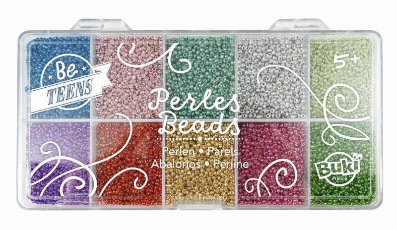 Zestaw koralików do nawlekania marki Buki zawiera przezroczyste, perłowe paciorki o średnicy 2 mm w pudełku w 10 najmodniejszych kolorach! Dobieraj i mieszaj je według własnego uznania, aby stworzyć niepowtarzalna biżuterię dla małej modnisi. Pudełeczko do przechowywania pozwoli zachować porządek w każdej z komór, co nie pozwoli na wymieszanie się kolorów. Każda komora zawiera 20g koralików. Świetny zestaw dla dzieci od 5 lat i starszych.
