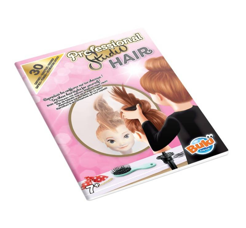 Dzięki zestawowi od Buki nie straszne ci stylizacje fryzur, które możesz ćwiczyć na profesjonalnej głowie fryzjerskiej, posiadającej bardzo realistyczny wzór wzrostu włosów. Głowę mocujemy do blatu za pomocą uchwytu, aby nie poruszała się w podczas "pracy". Professional Studio SALON FRYZJERSKI to 30 różnych stylizacji fryzur do wypróbowania na główce lalki, a następnie na sobie lub przyjaciółce. Zestaw marki Buki, to świetna propozycja dziewczynek od 7 roku życia, lubiącej czesać, zaplatać czy upinać włosy!