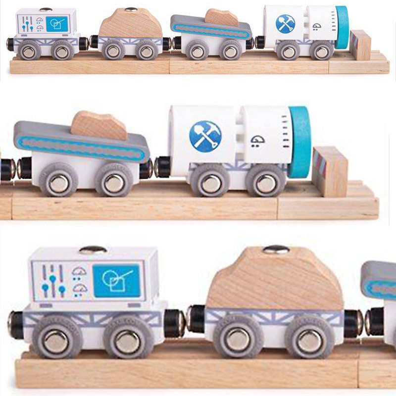 Zestaw kolejowy Bigjigs na swoich trzech wagonach może przewieść sprzęt niezbędny w czasie wykopalisk oraz minerały dzięki nim wydobyte. W skład zestawu wchodzą dwa mini tory oraz bufor, który jest idealnym zakończeniem trasy pociągu.