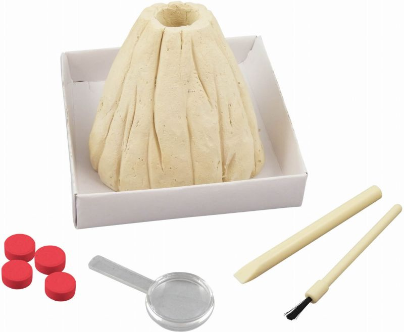 Teraz nadszedł czas na prace wykopaliskowe. Miniwulkan erupcja i odkopywanie Buki zawiera również praktyczny zestaw akcesoriów archeologicznych. Pędzelek, dłutko oraz szkło powiększające będą niezbędne, by odkryć i dokładnie zbadać zatopione w skalnej ścianie kamienie wulkaniczne!
