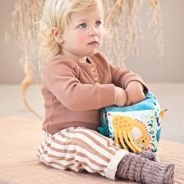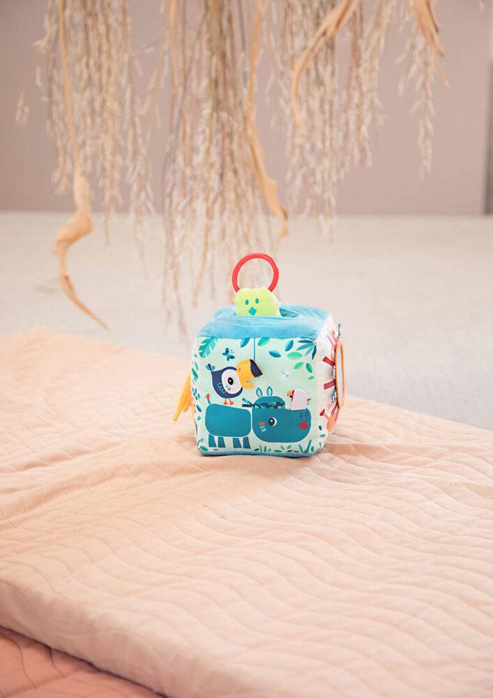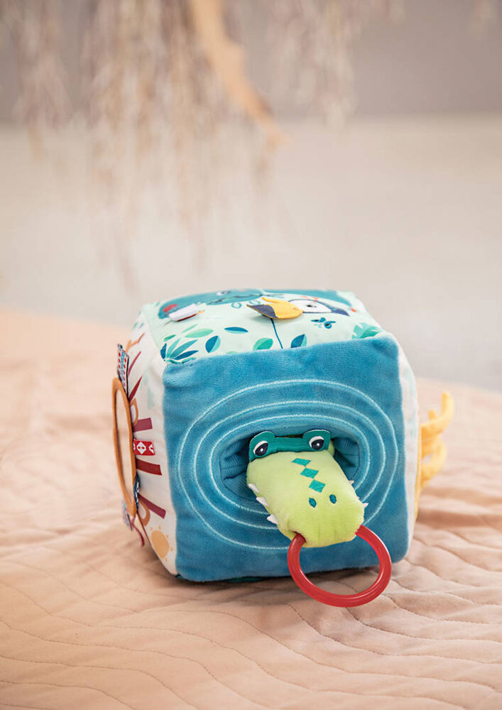 Kostka aktywizująca z pozytywką wielofunkcyjna miękka z gryzakiem Dżungla 83399 Lilliputiens