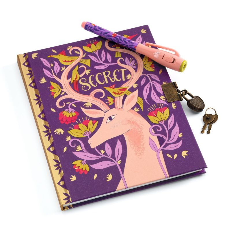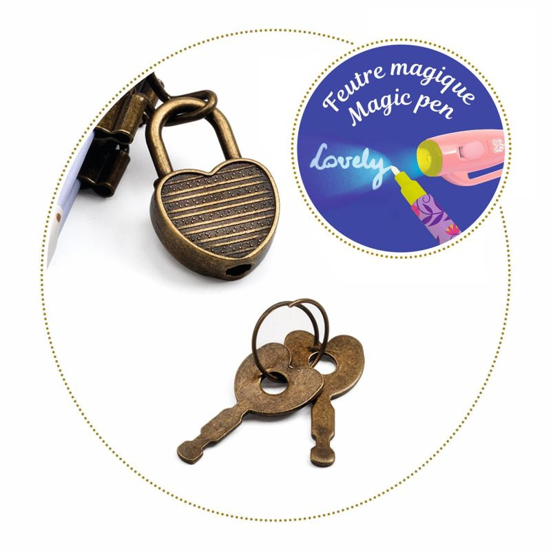 Sekretny pamiętnik z magicznym długopisem Melissa Djeco to aż 88 kartek w linię gotowych do zapisania magicznym długopisem, który pisze niewidzialnym tuszem! Zapisane sekrety będą widoczne tylko w świetle UV. Latarka UV ukryta jest w skuwce długopisu, zasilana 3 bateriami LR44HD (w komplecie). W zestawie znajduje się również kłódka z dwoma kluczykami. Od teraz wszystkie sekrety będą bezpieczne.