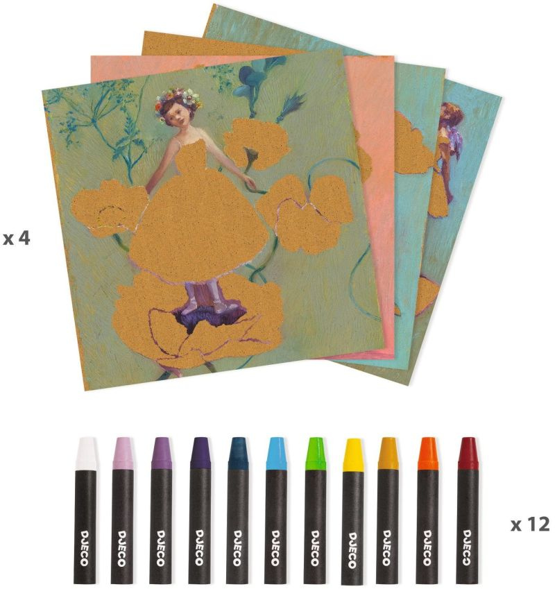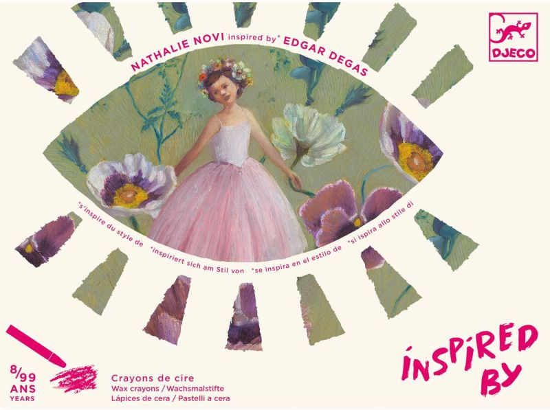 Zabawa w malowanie pastelami olejnymi nawiązuje do dzieł wielkiego impresjonisty – Edgara Degasa. Ten genialny twórca sztuki w swoich obrazach stawiał na realistyczno-romantyczne połączenia. Szerszej publiczności Degas znany jest przede wszystkim z obrazów przedstawiających eteryczne, delikatne istoty, za jakie uchodzą baletnice. I to właśnie w tej estetyce został utrzymany zestaw kreatywny Djeco Baletnica!