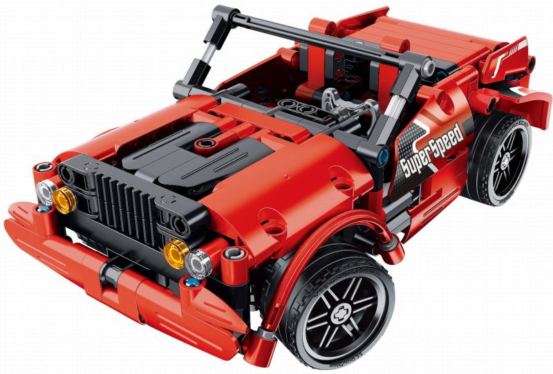 Zabawa rozpoczyna się na etapie samodzielnego montażu zabawki. Obrazkowa instrukcja krok po kroku przedstawia schematy postępowania, dzięki którym smyk sam może wybrać, co zbuduje: kabriolet czy samochód sportowy.