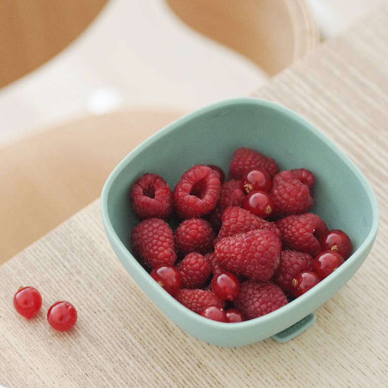 Jej ergonomiczny, kwadratowy kształt został zaprojektowany tak, aby ułatwić nabieranie jedzenia łyżeczką lub widelcem. Wysokie, zaokrąglone brzegi zapobiegają rozsypywaniu się posiłku, a antypoślizgowa przyssawka na spodzie sprawia, że miseczka stabilnie trzyma się stołu nawet podczas najbardziej energicznych prób nauki jedzenia.