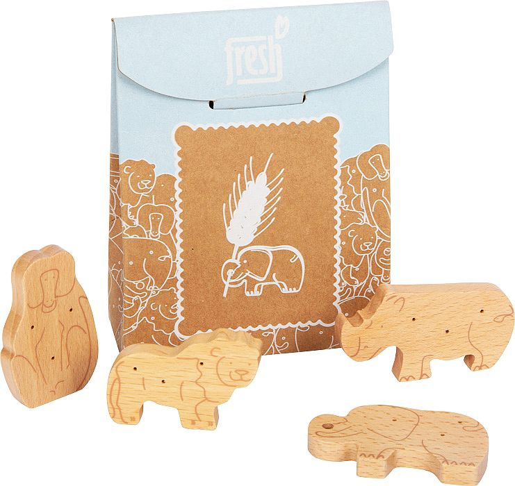 Drewniane krakersy w kształcie zwierzątek od Small Foot to must-have dla asortymentu w dziecięcym sklepie, dobry dodatek w zabawkowej kuchni, a także niezbędny gadżet, gdy maluch zaprasza na piknik lub spotkanie przy herbatce.