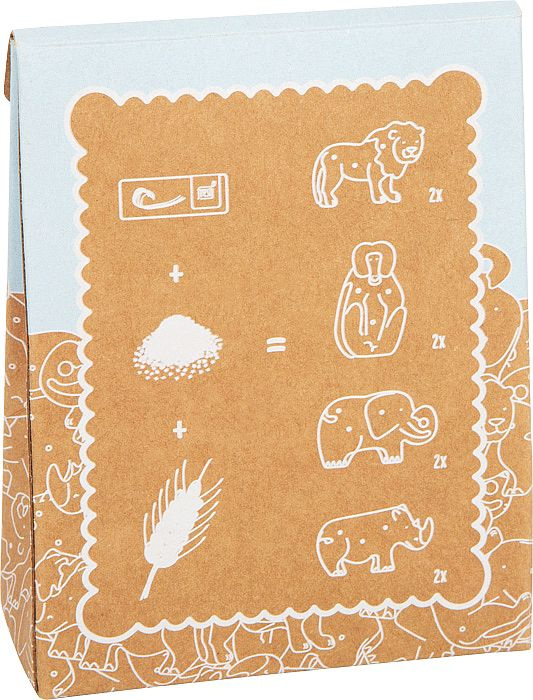 Przechowywanie krakersów może odbywać się w dołączonym, składanym opakowaniu. Wykonano je z nieprzetworzonej tektury, która jest przyjazna dla natury i biodegradowalna.