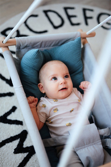 Huśtawka od Small Foot to bardzo wygodne i bezpieczne miejsce do leżenia z miękką poduszką i 3-punktowym pasem. Dzięki niech Twoje dziecko może wyciszyć się a nawet zdrzemnąć.