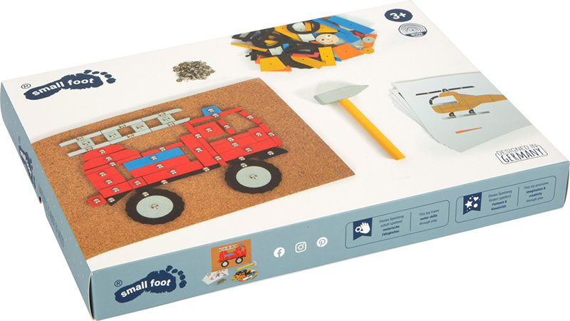 Jest to kolejna odsłona klasycznej przybijanki od Small Foot. W tej grze można tworzyć także własne dzieła sztuki lub podążać za szablonami obrazków. Tworzenie własnych obrazów sprzyja rozwojowi kreatywności. Dzieci będą również trenować swoją zręczność, lepiej poznają kolory i kształty oraz poprawią swoją percepcję wzrokową dzięki tej grze w młotki.