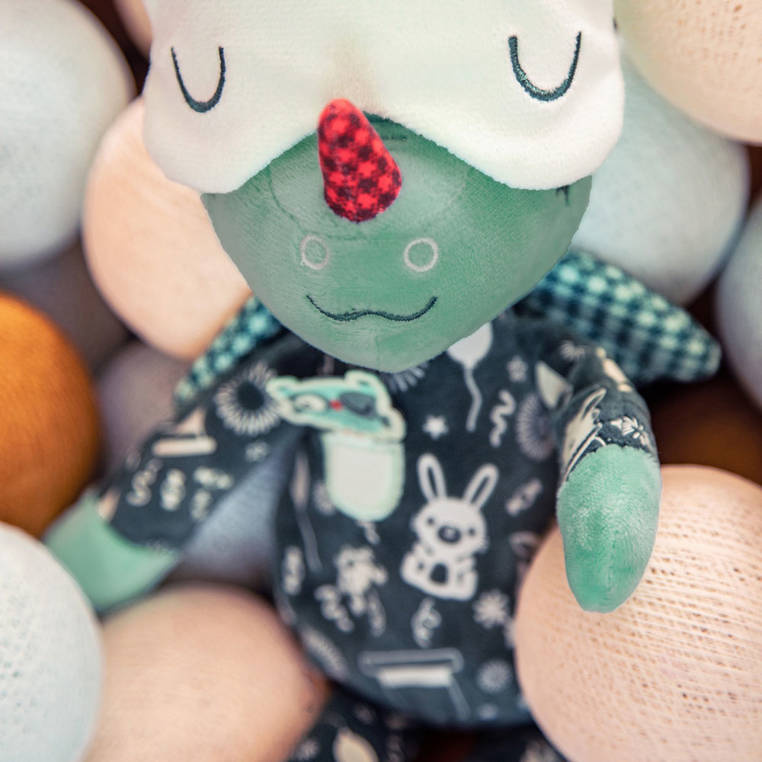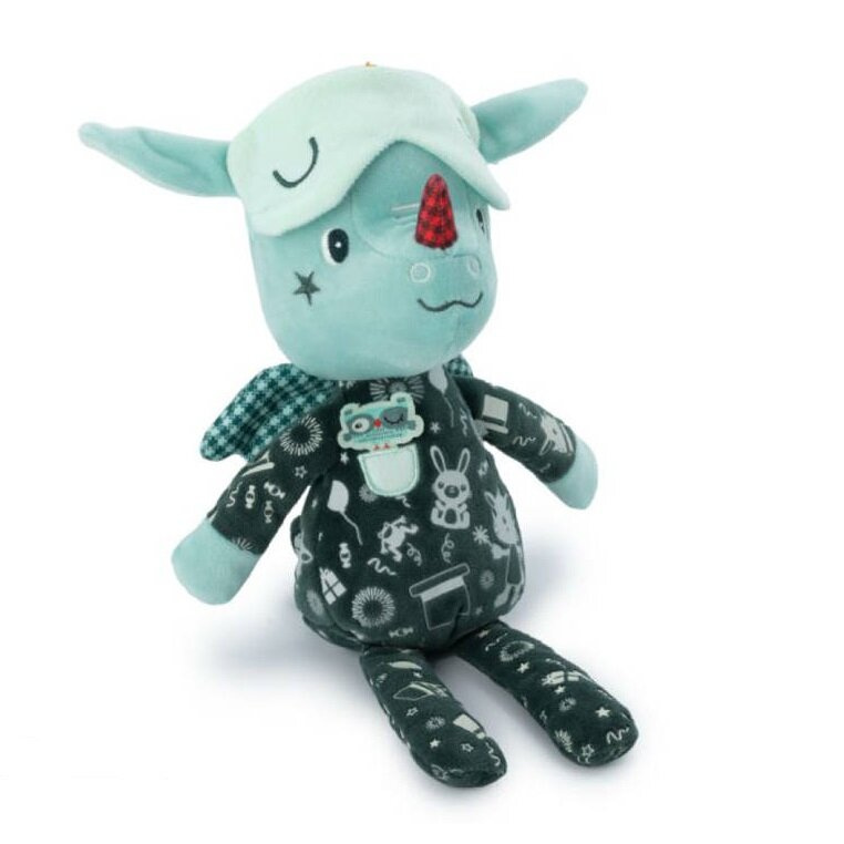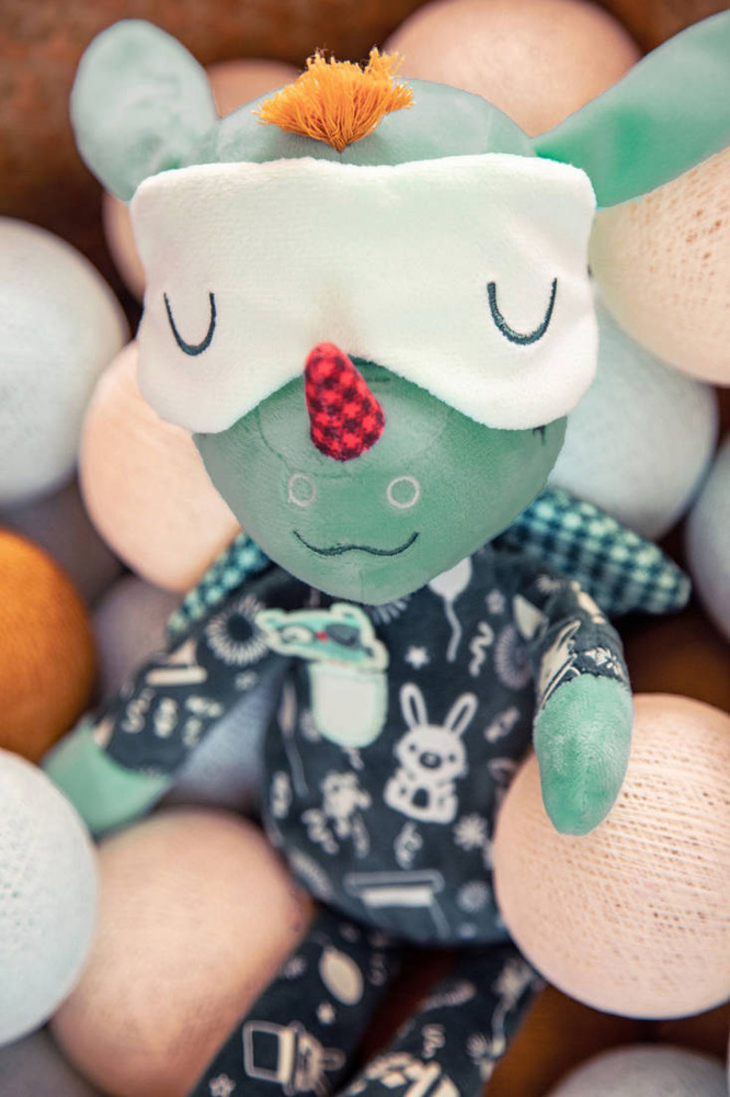 Ta miękka i świecąca w ciemności przytulanka do spania i tulenia Smok Joe to kolejna propozycja miłego w dotyku pluszaka od belgijskiej marki Lilliputiens. Ta oryginalna maskotka przybrała postać uroczego zielonego Smoka Joe. To wyjątkowa forma przytulanki, gdyż posiada elementy fluorescencyjne świecące w ciemności. To także wspaniały pierwszy przyjaciel maluszka. Uwielbia się przytulać, pomoże dziecku uspokoić się, wyciszyć i zasnąć. Smok Joe to 32 centymetrowa przytulanka w kolorze zielonym. Ma na sobie ciemną piżamkę z kieszonką (i sówką-naszywką, która dodatkowo stymuluje sensorycznie) oraz z fluorescencyjnymi grafikami, które świecą gdy zgaśnie światło. Joe ma kraciaste skrzydełka, odstające uszy, żółtą czuprynkę i czerwony róg na nosie, a na głowie opaskę, którą można zsuwać na oczy. Opaska ta jest jednym z elementów wykazujących właściwości fluorescencyjne. Przytulanka wyróżnia się także solidnością wykonania. Jest w 100% bezpieczna dla dzieci. Zabawa z tą przyjemną w dotyku przytulanką aktywizuje zmysł dotyku. Jej wyjątkowy design i kolorystyka sprawiają, że ten pluszowy Smok mocno przykuwa dziecięce spojrzenia aktywizując przy tym ich zmysł wzroku. Z pewnością wyżej opisany "efekt specjalny" polegający na świeceniu w ciemności, będzie dla najmłodszych zaskakujący, przez co pobudzi ich wyobraźnię. Poprzez wykonywanie czynności jak: unoszenie, potrząsanie, chwytanie, czy zsuwanie, dzieci rozwijają małą motorykę. Ta stworzona z najwyższej jakości materiałów przytulanka jest uniwersalna tematycznie i kolorystycznie, stąd też może ona stanowić interesujący podarunek zarówno dla chłopca jak i dla dziewczynki od 6 miesiąca życia.