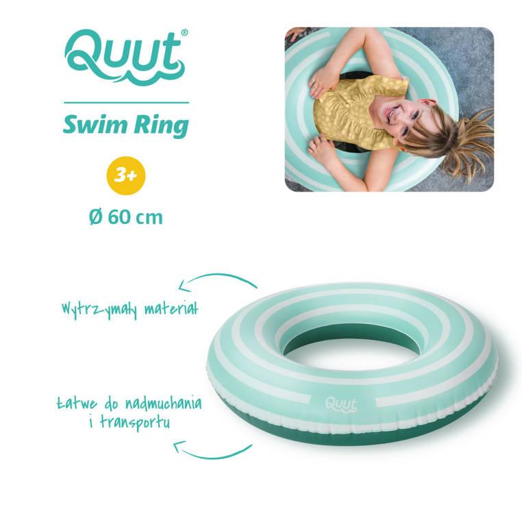 Wakacje zbliżają się wielkimi krokami. Temperatury coraz bardziej upalne, więc już czas należycie przygotować się na tegoroczny wypoczynek nad wodą. Z pewnością będzie Wam w tym pomocne średnie kółko do pływania Garden Green belgijskiej marki Quut. Jest to wysoce praktyczne rozwiązanie, oferujące dzieciom możliwość bezpiecznego wypoczynku na basenie, na plaży czy też w ogrodzie. Kółko zostało zaprojektowane z myślą o dzieciach od 3 roku życia, lecz z powodzeniem będzie im służyło aż przez około 5 następnych lat. Wygląda na prawdę wyjątkowo, zarówno pod kątem kształtu czy też wzornictwa i kolorystyki. Kolory są piękne i intensywne: od spodu koło jest ciemnozielone, a u góry widnieją biało-turkusowe pasy. Kółko jest wręcz stworzone po to aby pierwszy kontakt dziecka z wodą był dla niego optymalnie przyjazny. To akcesorium przyda się zarówno do pierwszych lekcji nauki pływania jak i do bardziej leniwego odpoczynku. Dzięki zabawie z kółkiem, dziecko na przestrzeni miesięcy i lat zdobędzie szereg nowych umiejętności. Kółko jest doskonałym sposobem na zaangażowanie dziecka do spędzania czasu na świeżym powietrzu. Kółko Garden Green 60 cm należy do kolekcji zabawek dmuchanych marki Quut.