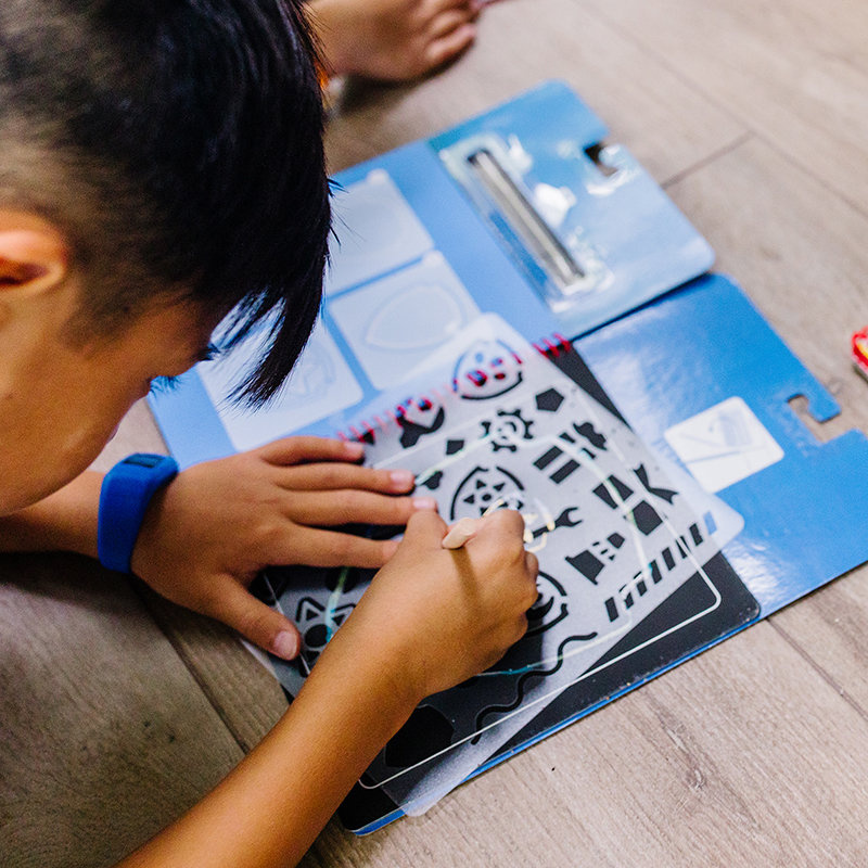 - Dołączony szablon do odrysowywania pozwala personalizować obrazki