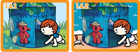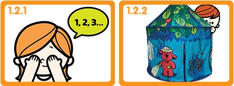 Szukanie ukrytych ilustracji na namiocie - rozwija spostrzegawczość i koncentrację.