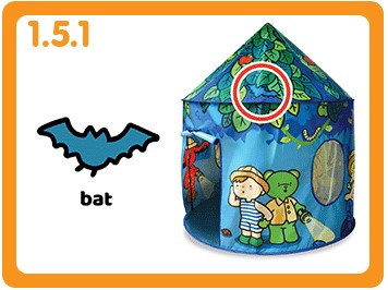 Na ilustracjach namiotu ukryte są ciekawe elementy (np. nietoperz, różowa latarka, pająk). Zachęć dziecko do ich odnalezienia.