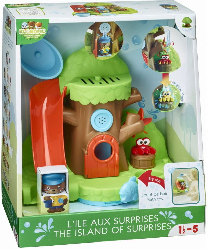 Wyspa Pełna Niespodzianek Klorofil to zabawka kąpielowa, którą Twój maluch pokocha dzięki wielu ruchomym atrakcjom zachęcającym do eksperymentów z wodą. Magiczny Świat Klorofil zapewnia wiele ruchomych funkcji i efektów specjalnych, w tym: