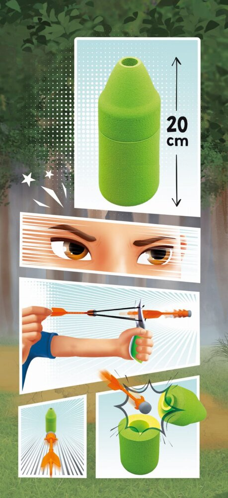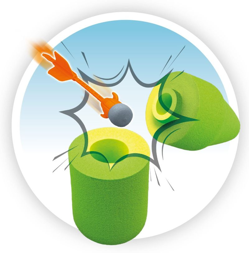 Pozwól swojemu smykowi trenować zdolności strzeleckie w bezpieczny sposób. W komplecie znajdują się wszystkie do tego niezbędne akcesoria: