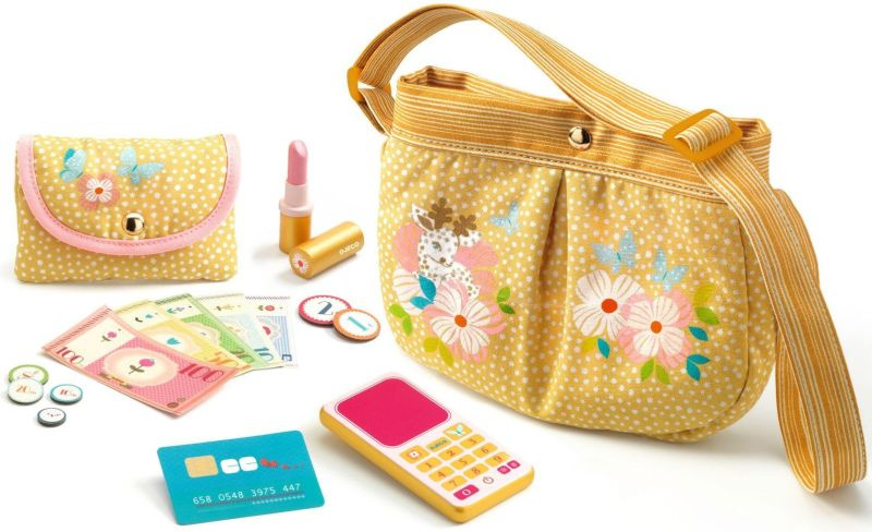 • torebka z akcesoriami dla dziewczynki do zabawy poprzez imitację,