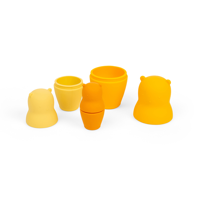 - 3 otwierane misie do gniazdowania, wykonane w 100% z silikonu spożywczego - materiału ekologicznego, który jest bezpieczny dla zdrowia.