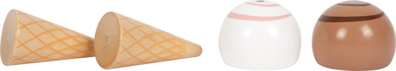 Akcesoria do zabawy w lodziarnię z kompletu Fresh od Small Foot zostały zaprojektowane tak, aby maksymalnie ułatwić wyjmowanie gałek lodów z przegródek z lady oraz nakładanie ich do rożków. Dzięki wbudowanym magnesom gałki można układać na sobie!