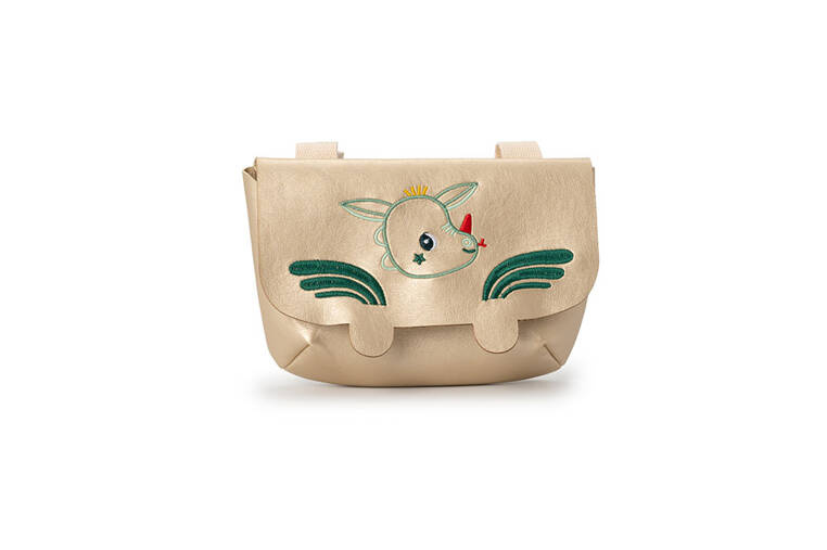 - Dodatkowymi atrybutami jeździka są: zamontowany przy kierownicy dzwoneczek oraz odczepiana torba.