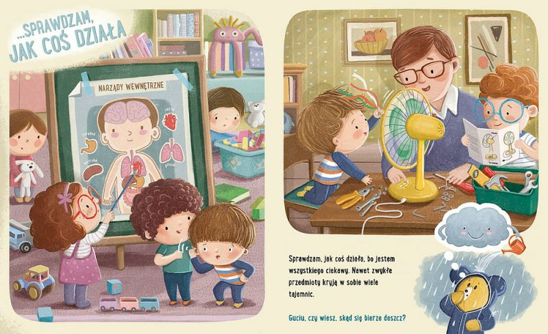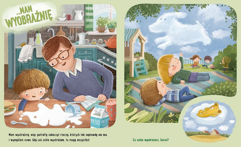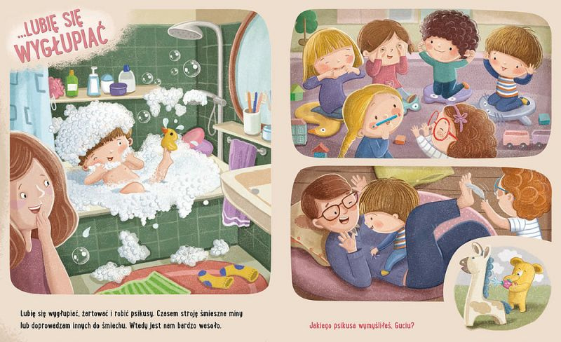 Pomysły na zabawy dla dzieci zawarte w książce Feluś i Gucio są doskonale znane rodzicom! Wśród nich znajdziemy m.in. zabawę w skojarzenia, wygłupianie się lub poszukiwanie odpowiedzi na pytania spod znaku "jak to działa?".