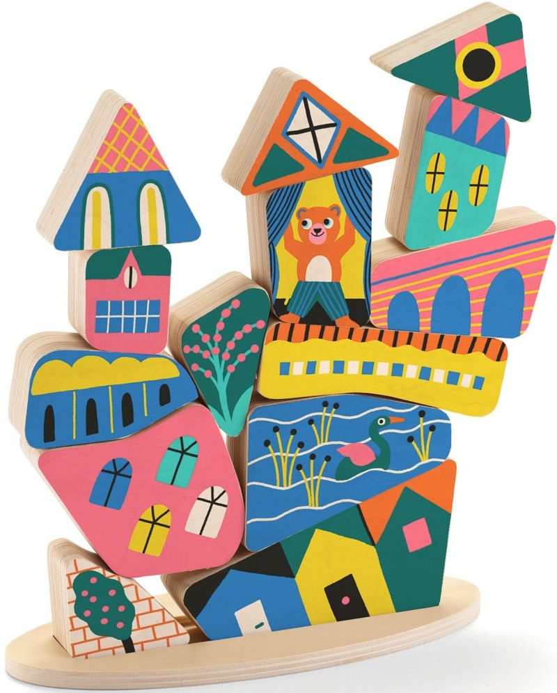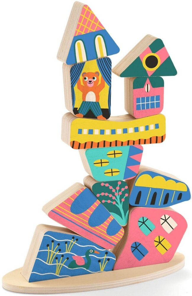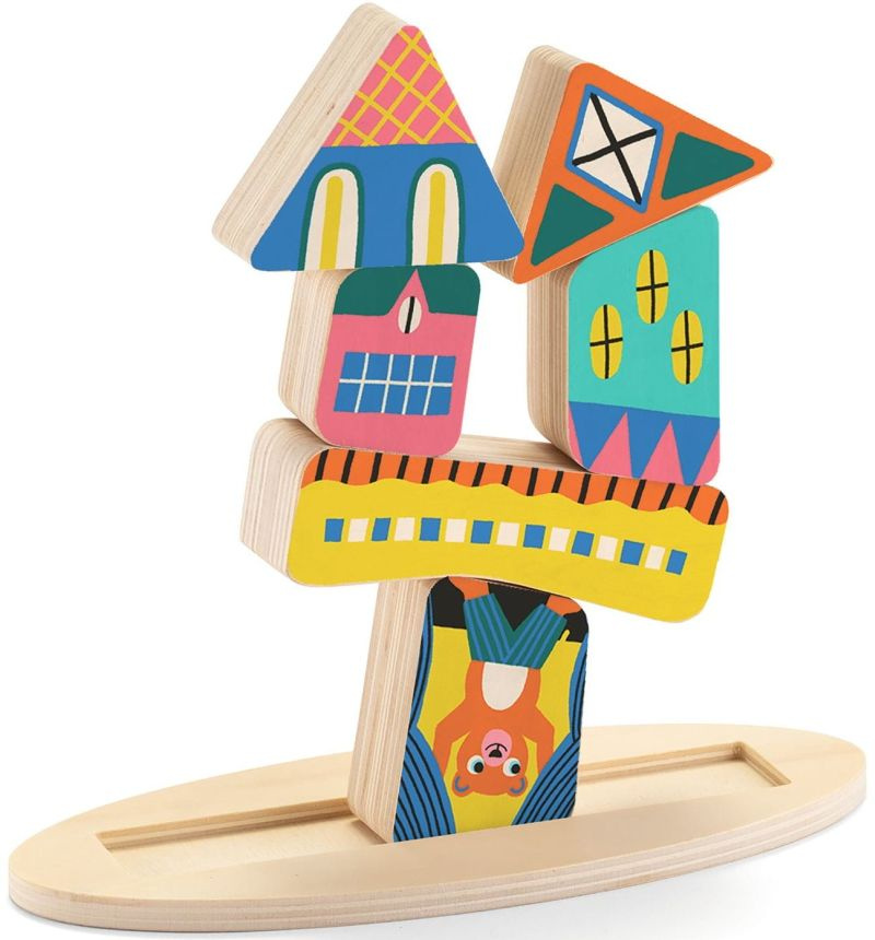 Drewniany balansujący domek Djeco to gra zręcznościowa, która uczy dzieci, czym jest równowaga.