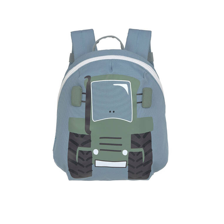 Plecak Lassig zachwyca detalami: ciemnozielona, grafitowa tkanina, oliwkowa aplikacja sympatycznego traktorka z trójwymiarowymi lusterkami bocznymi i wygodna forma przyciągają wzrok i rozpalają dziecięcą wyobraźnię. Rączka, paski i uchwyty suwaków są jasnoniebieskie, a elementy zapięcia w klasycznej bieli. W środku jest wydzielone miejsce na bidon, a wszyta wizytówka zawsze pomoże wrócić plecaczkowi do właściciela.