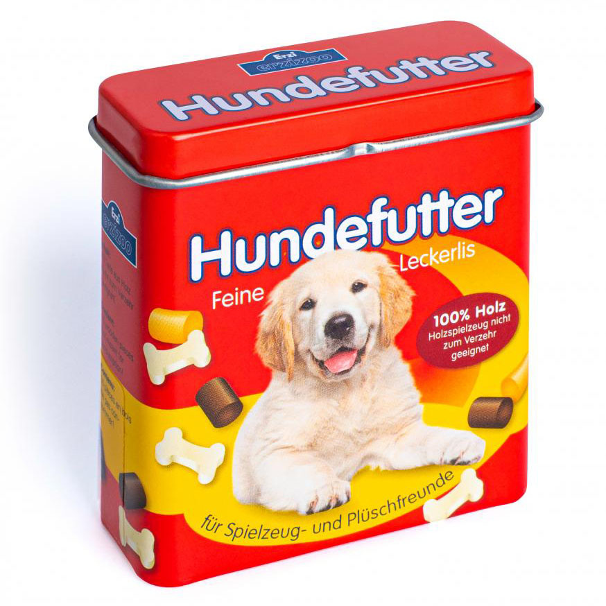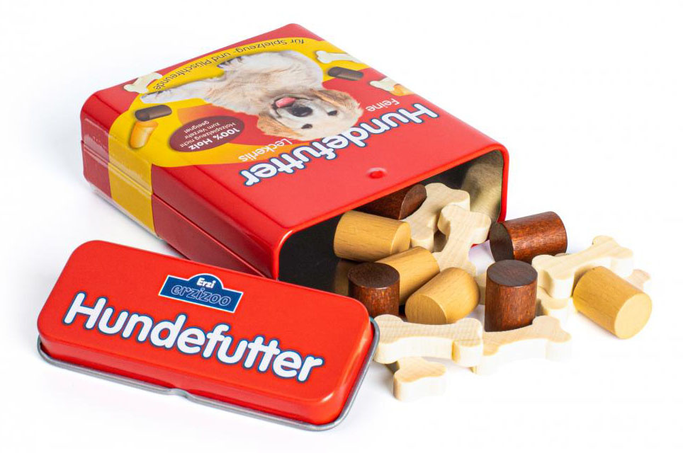 Zabawkowe przysmaki dla psa marki Erzi pozwolą nagrodzić pluszowego psiaka, gdy ten nauczy się nowej sztuczki lub po prostu będzie posłuszny. 16 drewnianych przysmaków dla psiaków w puszce sprawdzi się także podczas zabawy w sklep w celu sprzedaży właścicielom czworonogów. Przysmaki mają różne kształty i prezentują się bardzo realistycznie. Opakowanie stanowi praktyczna puszka ze zdejmowaną pokrywką.