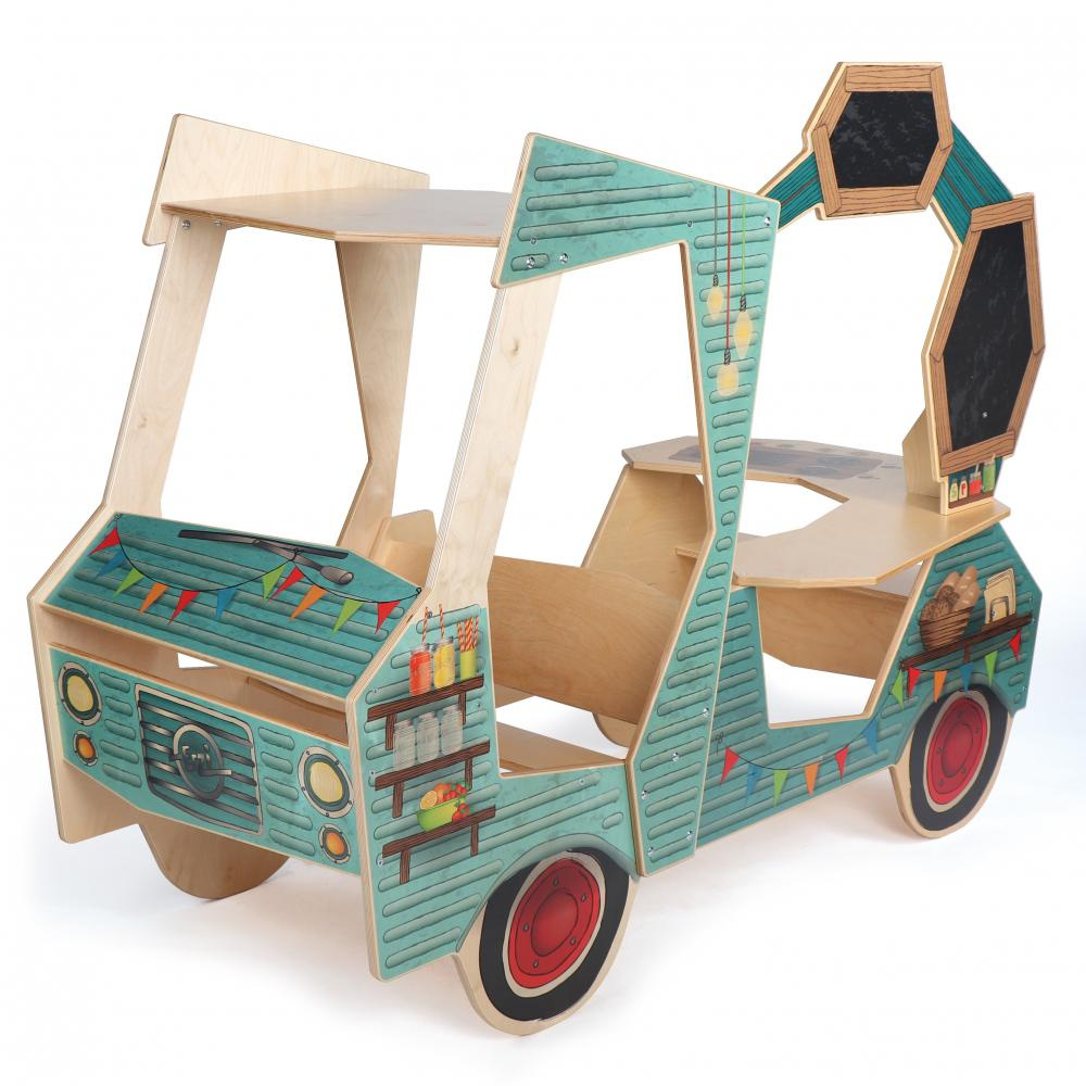 Drewniana furgonetka do zabawy w food truck to propozycja marki Erzi do zabawy w odgrywanie ról. Przestronne wnętrze pojazdu pozwala na jednoczesną zabawę kilku dzieciom. Food Truck wykonany został z wysokiej jakości drewna buku oraz sklejki brzozowej, które zostały polakierowane.