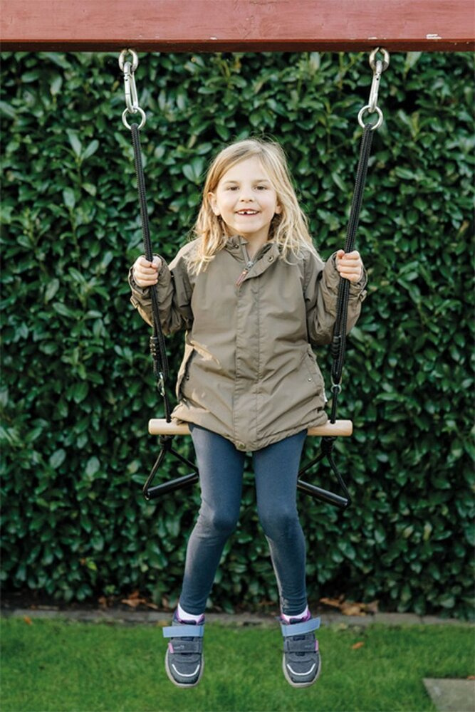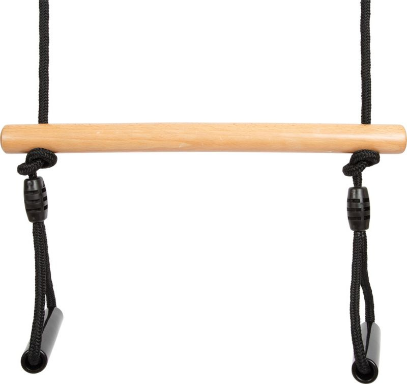 Drewniany drążek trapezowy idealnie sprawdza się zarówno jako siedzisko huśtawki, jak i jako instalacja do wykonywania akrobacji. Regulowanej długości liny łączą się z praktycznymi uchwytami o stałym rozstawie (dzięki wykorzystaniu drążka).