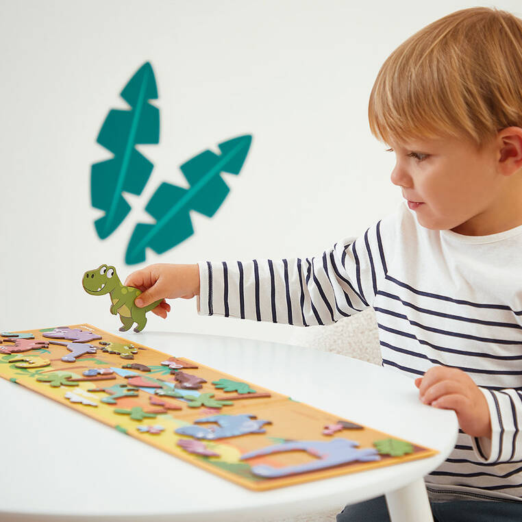 Magnetyczne historie Dinozaury z linii Magneti'stories francuskiej marki Janod to prawdziwa gratka dla fanów dinozaurów i prehistorycznego świata. Maluch otrzyma do dyspozycji 30 magnesów pod postacią dinozaurów, różnych gatunków roślin, oraz inne elementy prehistorycznego krajobrazu, a w połączeniu z rozkładaną potrójną planszą stworzą przepiękną ilustrację. Magnesy układane są wedle własnej koncepcji, co sprawia, ze zabawka nie znudzi się szybko. Ta magnetyczna układanka jest chętnie wybierana przez rodziców na całym świecie. To nie tylko wspaniała rozrywka, ale także możliwość wielopłaszczyznowego rozwoju. Zabawa z tą układanką pobudza artystycznie, uczy kreatywnego podejścia do tematu czy też wspomaga sprawność manualną. To doskonały pomysł na angażujący prezent dla chłopca i dziewczynki.