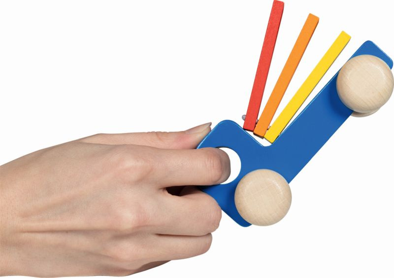 Zaskakującą cechą zestawu 4 autek z efektami dźwiękowymi Goki jest to, że znakomicie sprawdzają się one również jako wprowadzenie do świata rytmu i własnoręcznie tworzonej muzyki. Każdy drewniany samochodzik został zintegrowany z innym typem instrumentu muzycznego. Do dyspozycji dzieci są: