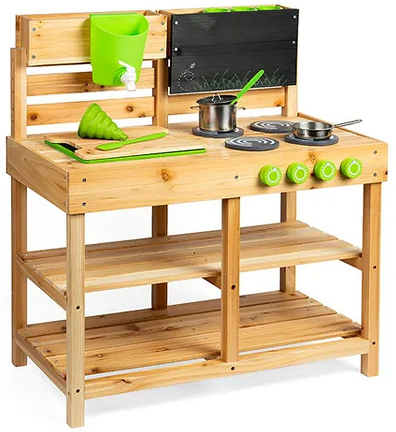 Drewniana kuchnia błotna dla dzieci Bigjigs stanowi świetną alternatywę dla tradycyjnych kuchni do zabawy.