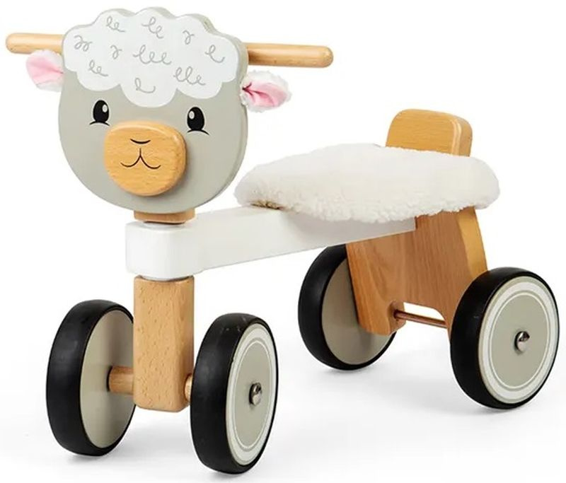 Drewniany rowerek jeździk dla dzieci 4-kołowy Owieczka Bigjigs 36058