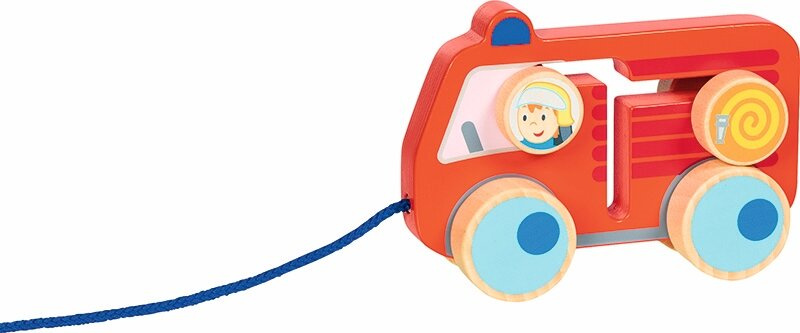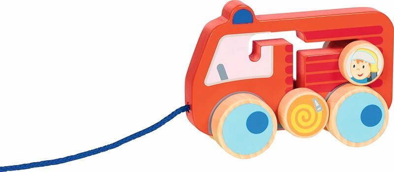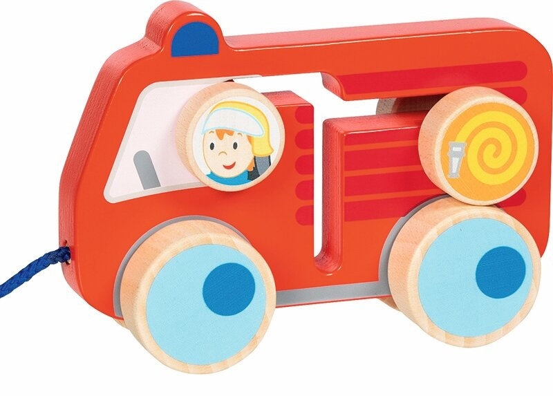 Ruszamy na akcję! To pierwsza rzecz, która przychodzi na myśl na widok tego pięknego drewnianego pojazdu ciągniętego po ziemi przez dziecko za pomocą sznurka. Straż Pożarna marki Goki to zachwycające, drewniane autko w kształcie wozu strażackiego mocno pobudzające wyobraźnię dziecka. Zabawka wyróżnia się ciekawym designem i żywą kolorystyką. Projektant pojazdu zadbał także o gładkie, szlifowane krawędzie, tak aby ten pojazd do ciągnięcia na sznurku był jak najbardziej komfortowy w użytkowaniu. Podczas ciągnięcia wozu strażackiego po podłodze maluch rozwinie umiejętności motoryczne. Zabawka w subtelny sposób zachęca i mobilizuje dzieci do nauki chodzenia. To idealny prezent dla chłopca i dziewczynki.