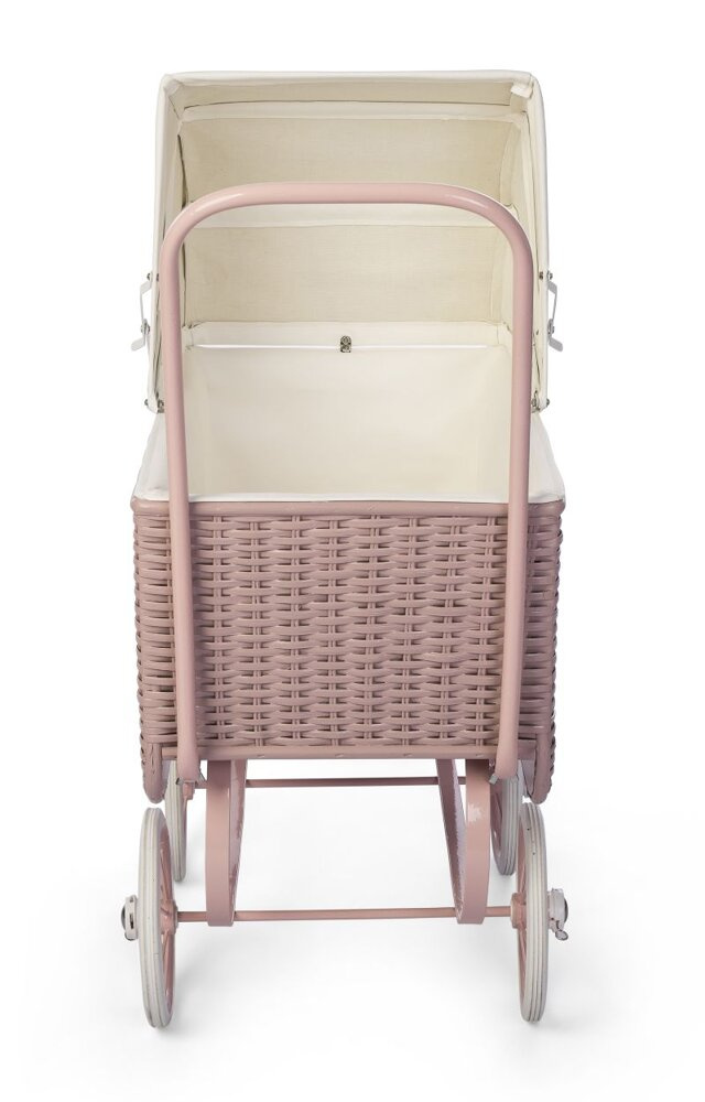 W magicznym dziecięcym świecie niewątpliwie znajduje się miejsce na przepiękny, ręcznie wykonany, rattanowy wózek retro dla lalek Doll Pram Retro Rattan Rose Astrup.