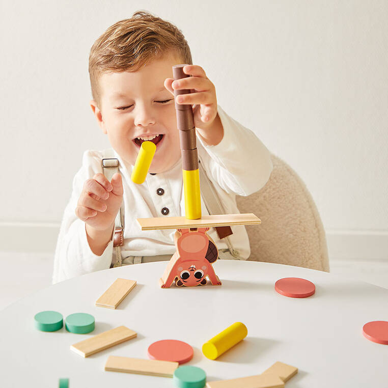 - zabawka zręcznościowa: bóbr na którym układane będą elementy (wyrzucone na kostce - w odpowiednim kolorze) lub wg własnego pomysłu – zabawa to trening logiki i umiejętności planowania, ale też rozwój małej motoryki i zręczności.