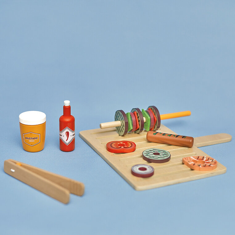 Zabieraj rodzinę lub grono znajomych i leć przygotować grilla! Już dziś wykorzystaj ten wspaniały, drewniany zestaw do grillowania i przygotuj swoim gościom fantastyczną ucztę! Mały kucharz odnajdzie w zestawie wszystko czego potrzeba by zadowolić każdego miłośnika dań z grilla!
