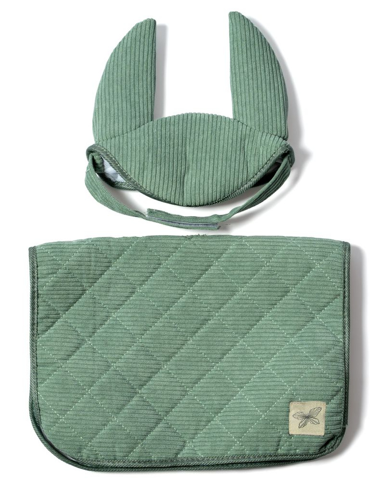 Podaruj dziecku zestaw sztruksowych akcesoriów do Hobby Horse by Astrup w pięknym kolorze jasnej zieleni, a otworzysz przed nim drzwi do świata pełnego fantastycznych przygód. Elegancka podkładka pod siodło i stylowa bonetka to idealne dopełnienie każdego wierzchowca, dodające mu uroku i autentyczności.