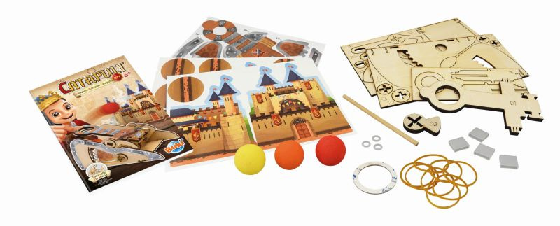 Gdy maszyna oblężnicza będzie gotowa, przyjdzie czas na dekorację – dołączone naklejki pozwolą nadać katapulcie unikalny charakter. Ale to nie koniec przygody! W zestawie znajduje się także tekturowy zamek, który możesz zbudować i uczynić celem swoich działań. Dopasuj siłę oraz kąt wyrzutu, aby wystrzelić piankowe pociski z maksymalną precyzją.